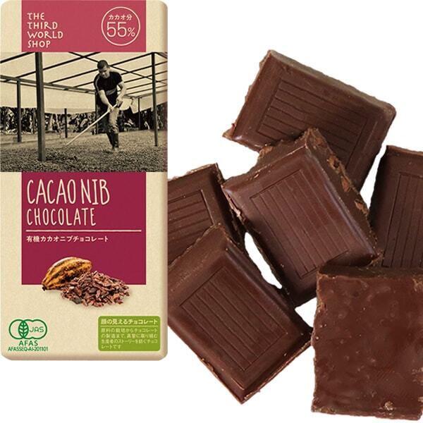 カリッとほろ苦いカカオニブが入ったフェアトレードビターチョコレート。